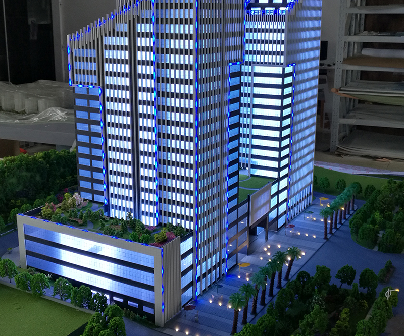 模型采用ABS等材料經(jīng)過(guò)CAD畫(huà)圖手工拼接、上色等制作工藝完成、并在模型內(nèi)部輔助LED燈光達(dá)到客戶(hù)展示要求